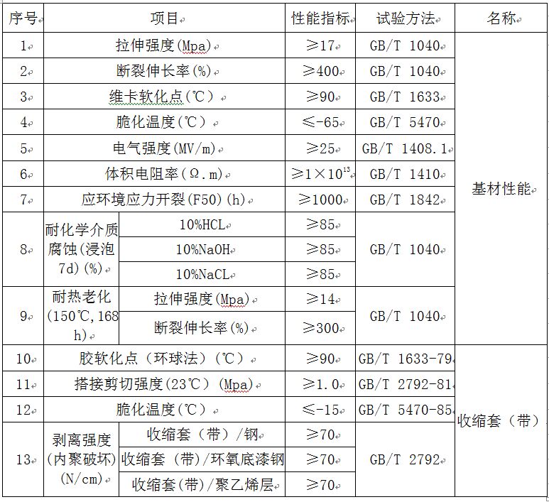 熱收縮其內層涂敷在鋼管表面的環氧底漆,中間層為特種熱熔膠,外層為改性的輻射交聯聚乙烯基材。